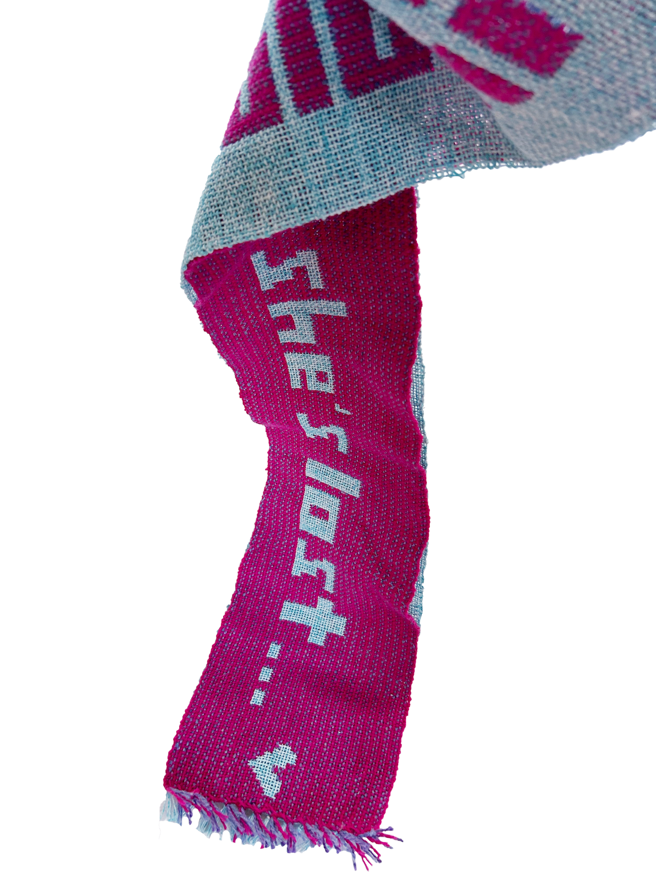 This weaving was woven with a double weave pick up technique. The “right” side is mainly pink wool and the “wrong” side is mainly light blue cotton. The color palette is inspired by my favorite colors as a child. For the text, I used grids to create my own font, one that felt like it fit into this early 2000’s aesthetic that my color palette was representing. Through this work, I wanted to explore how it felt to transition from being a child to a full adult. It feels exciting at first, to have that freedom, but since I’m graduating in a few months, I’ve been reflecting on how I feel like I’m not ready to make that jump to “the real world.” Ever since I was legally considered an adult, I’ve felt this nostalgia for my childhood years and how we were all in a rush to grow up and get away from our parents. Reflecting on this now, I wish I hadn’t taken it for granted. I lost the girl I was, because society told me that all I should want is to grow up.